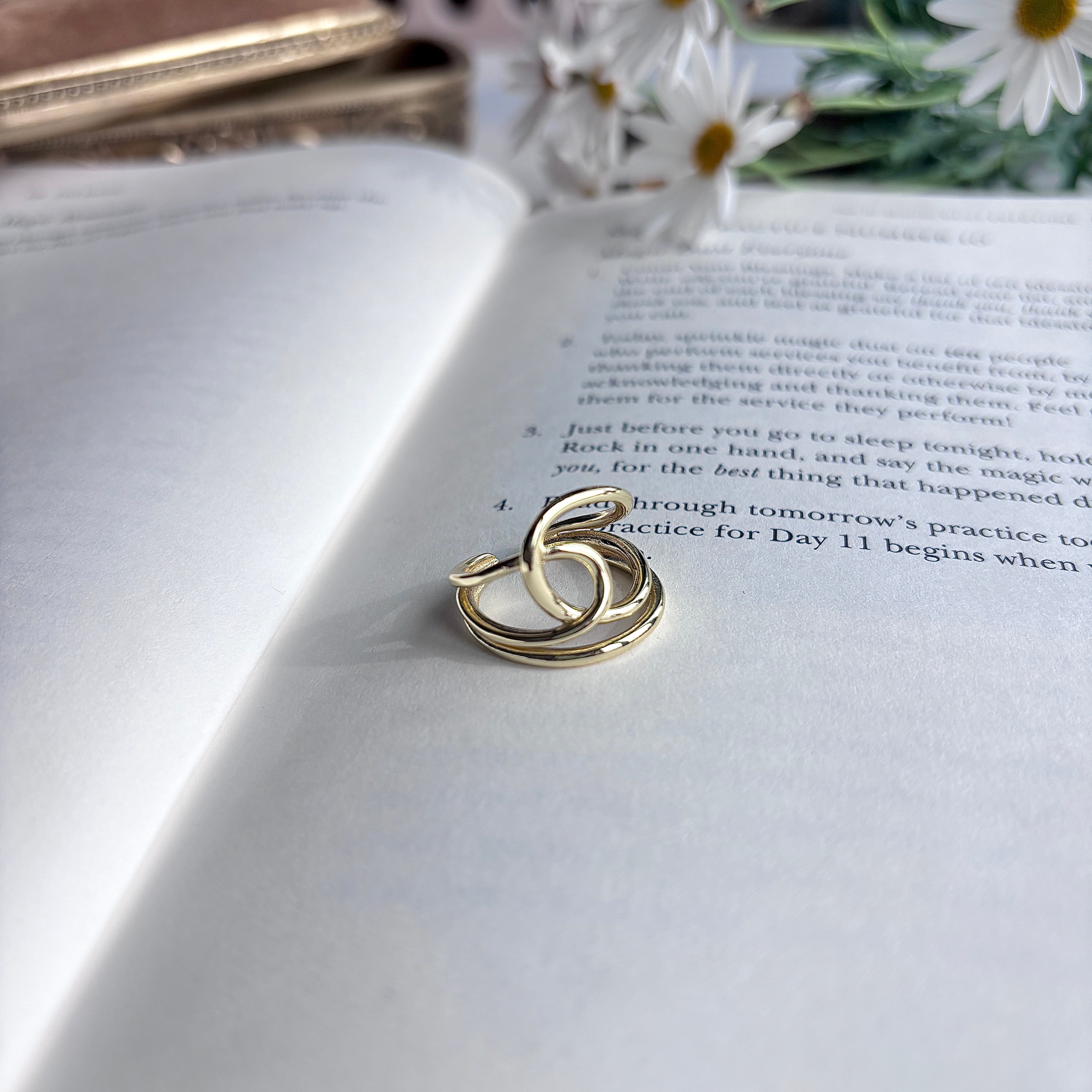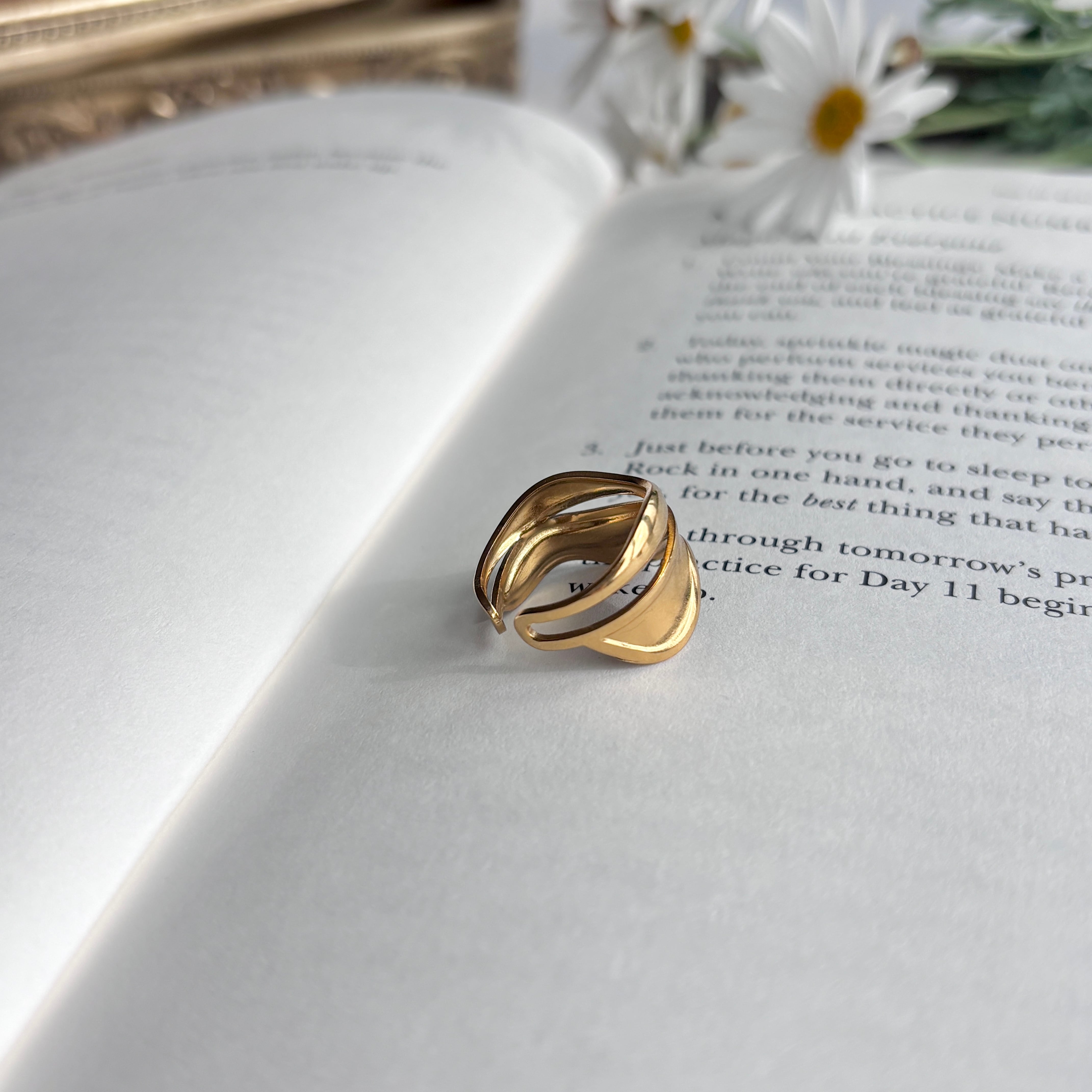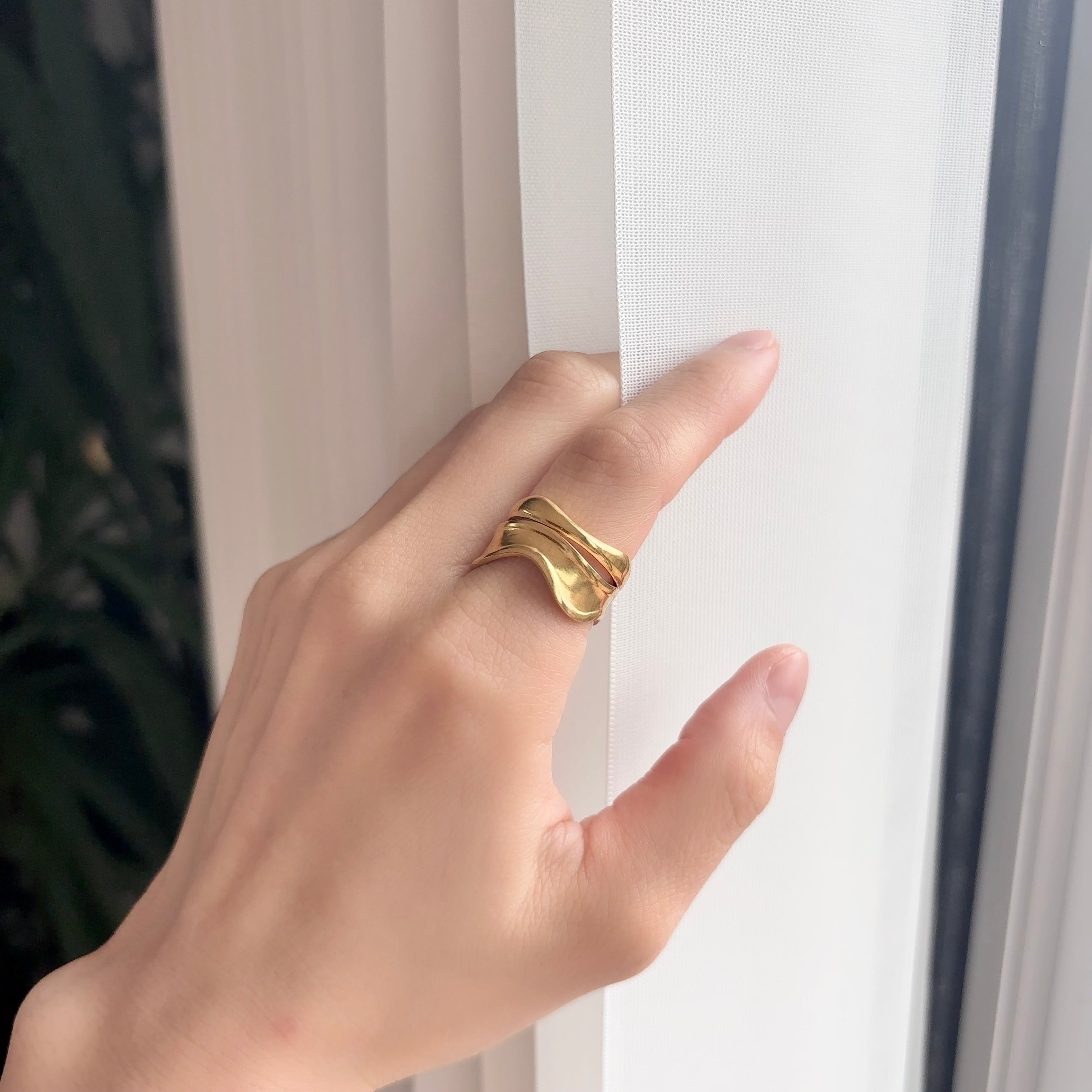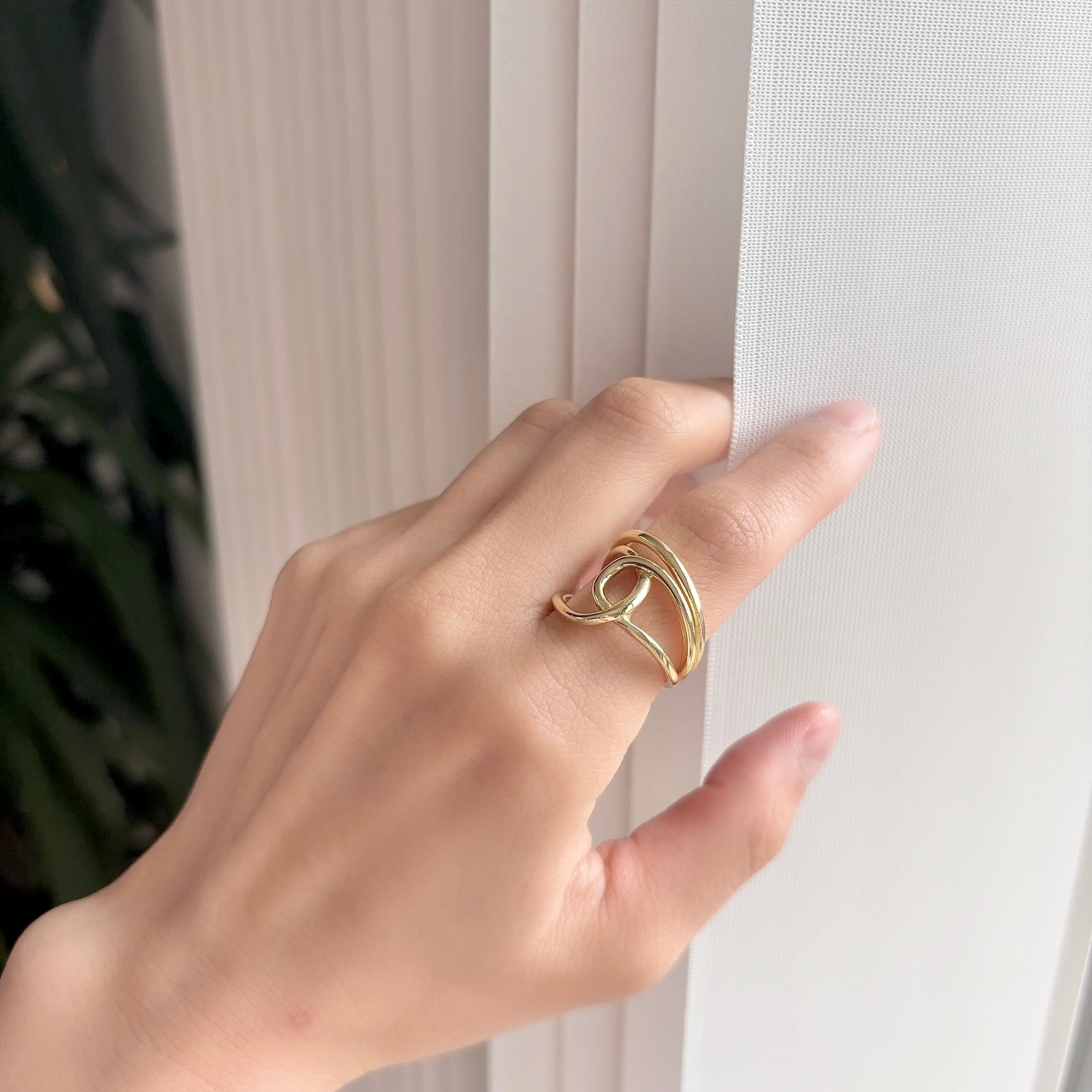 - 3本のラインが重なり、絶妙なバランスで指先を包み込む。主役級の存在感で、つけるだけで背筋が少し伸びるようなデザイン。