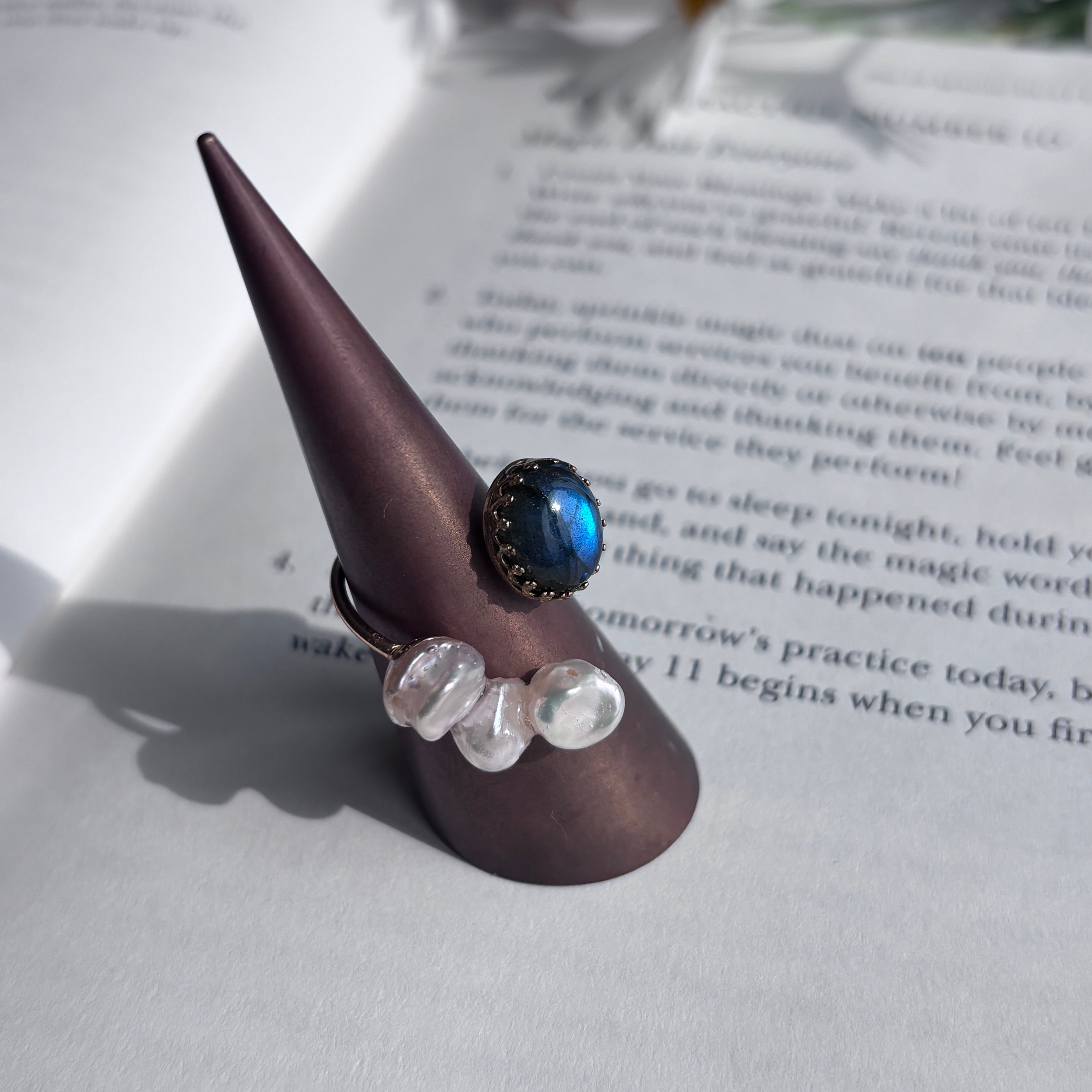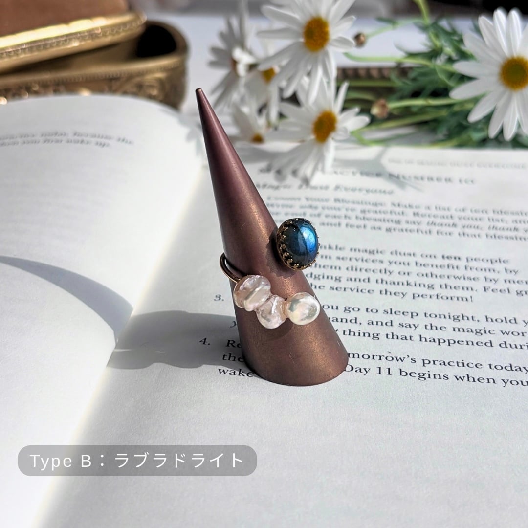 一見落ち着いた色味の中に、神秘的な輝き(ラブラドレッセンス)を宿す石。思いもよらないチャンスを引き寄せたり、眠っていた才能を目覚めさせてくれると言われています。新しい自分に出会いたい時に。